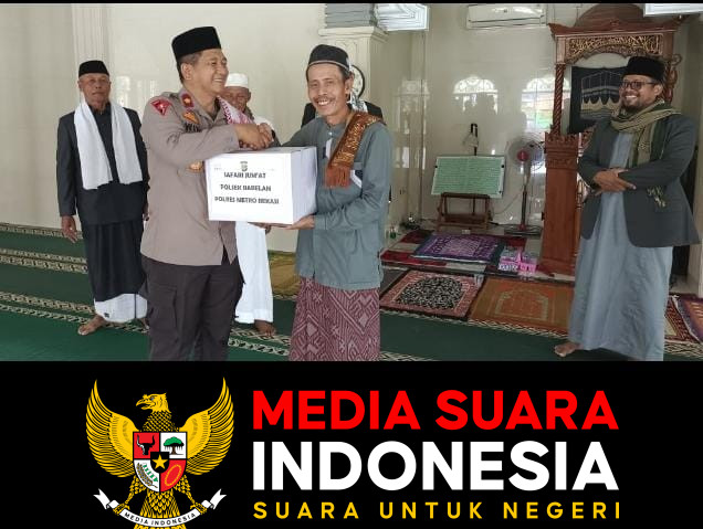 BABELAN.BEKASI//mediasuaraindonesia.id / 21 November 2025 – Kapolsek Babelan, Kompol Wito, SH., MH, beserta jajaran, melaksanakan kegiatan pemberian bantuan berupa sembako dan alat kebersihan kepada Marbot dan Dewan Kemakmuran Masjid (DKM) Jami Darul Amal. Kegiatan ini berlangsung di Masjid Jami Darul Amal, Kp. Buni Rt. 013/008 Desa Buni Bakti, Kecamatan Babelan, Kabupaten Bekasi.