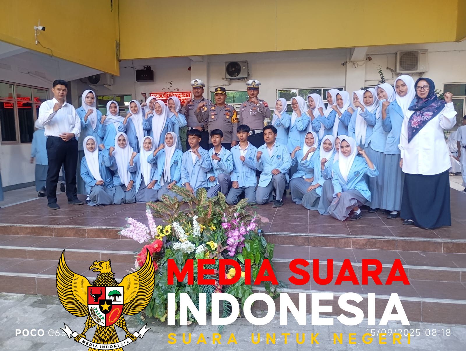 Citeureup, Bogor // mediasuaraindonesia.id / Polres Bogor. Kapolsek Citeureup Polres Bogor Polda Jabar, Kompol Eddy Santosa, S.Pd., M.H., bersama jajarannya melaksanakan kegiatan menjadi inspektur upacara (irup) di sejumlah sekolah di wilayah Kecamatan Citeureup, Kabupaten Bogor, Senin (15/09/2025).