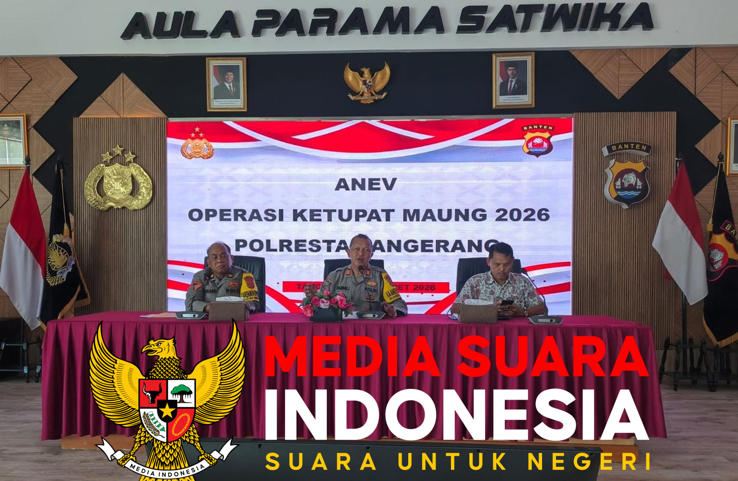 TANGERANG // mediasuaraindonesia.id /  Dalam rangka mengoptimalkan pengamanan arus mudik dan balik Lebaran, jajaran Posko Utama Polresta Tangerang menggelar Apel Khusus bagi para Kepala Satuan Tugas (Kasatgas) dan Operator Operasi Ketupat Maung 2026. Kegiatan ini dipimpin langsung oleh Kaposko AKP Hambali pada Jumat (13/02/2026).