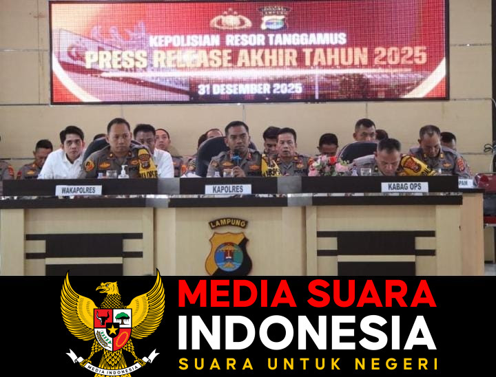 TANGGAMUS // mediasuaraindonesia.id / Polres Tanggamus menyampaikan Rilis Akhir Tahun 2025 yang memuat capaian kinerja sepanjang tahun, meliputi penanganan kriminalitas, pemberantasan narkoba, keselamatan lalu lintas, hingga dukungan program pemerintah di bidang ketahanan pangan dan pemenuhan gizi masyarakat.