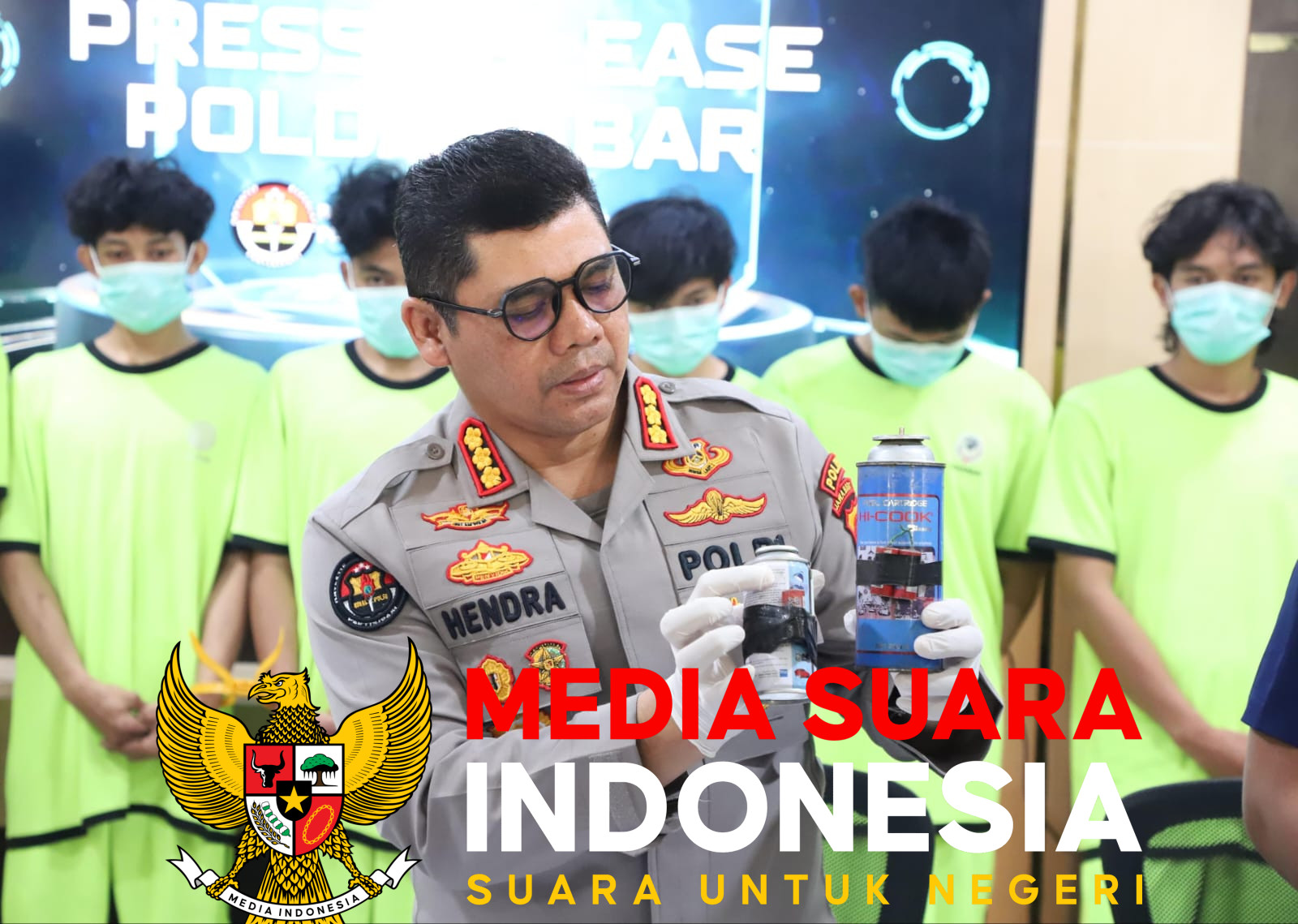 Bandung // mediasuaraindonesia.id / Kepolisian Daerah Jawa Barat menggelar konferensi pers terkait pengungkapan kasus tindak pidana penyebaran rasa permusuhan dan aksi pelemparan bom molotov saat demonstrasi di Gedung DPRD Jawa Barat. Dalam konferensi pers yang dipimpin oleh Kabid Humas Polda Jabar, Kombes Pol. Hendra Rochmawan, S.I.K., M.H., bersama Dirressiber Polda Jabar, dipaparkan 12 orang tersangka, di mana 11 di antaranya dihadirkan langsung, sementara 1 tersangka lainnya masih di bawah umur dan tengah menjalani pemeriksaan.