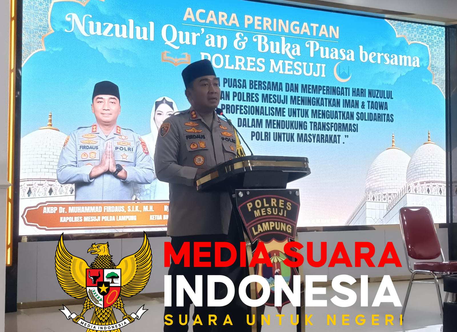 MESUJI // mediasiaraindonesia.id / Polres Mesuji menggelar acara peringatan Nuzulul Qur’an dan buka bersama dengan tema “Buka puasa bersama dan memperingati hari Nuzulul Qur’an Polres Mesuji meningkatkan iman dan taqwa serta profesionalisme untuk menguatkan solidaritas dalam mendukung transformasi Polri untuk Masyarakat” di Aula Tri Brata Endra Dharma Laksana Polres Mesuji, Jumat (06/03/26).