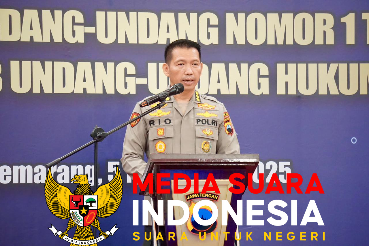 Polda Jateng, Kota Semarang // mediasuaraindonesia.id / Sebagai upaya memberi pemahaman menyeluruh tentang substansi KUHP baru pada aparat penegak hukum, Kepolisian Daerah Jawa Tengah (Polda Jateng) menggelar sosialisasi Undang-Undang Nomor 1 Tahun 2023 Tentang Kitab Undang-Undang Hukum Pidana (KUHP). Kegiatan yang digelar pada Rabu, 5 November 2025, di Khas Hotel Semarang ini diikuti oleh ratusan peserta yang terdiri dari aparat penegak hukum, akademisi, dan praktisi hukum.